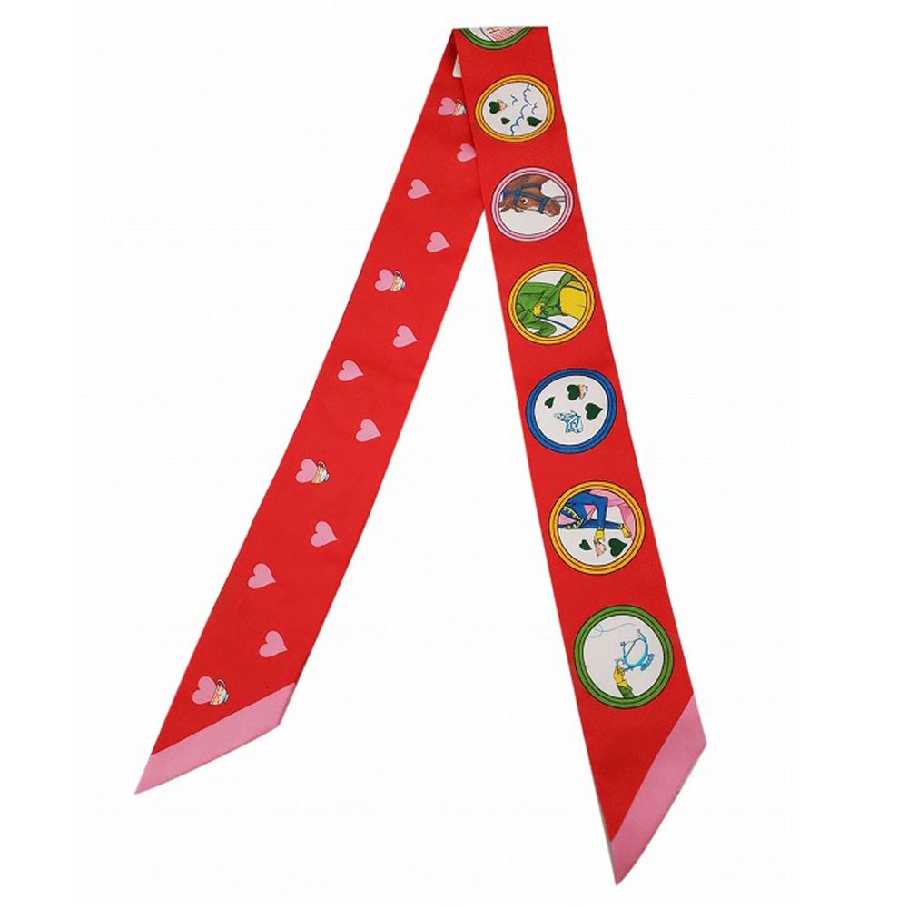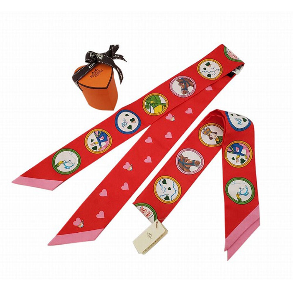 エルメス HERMES ツイリー Tea Time シルク100% ルージュヴィフ/ヴェール/マルチ 2つセット