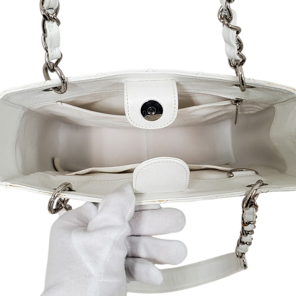 シャネル CHANEL キャビアスキン マトラッセ チェーントートバッグ ホワイト/MA2602018