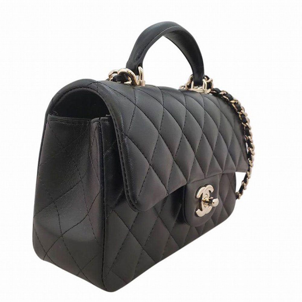 CHANEL Lambskin Mini Matelasse Top Handle Mini 20 Flap Bag Chain Shoulder