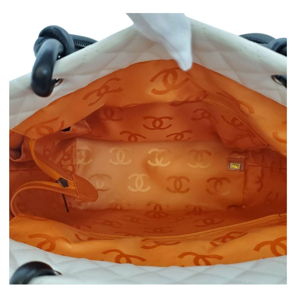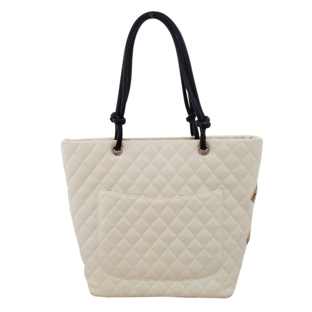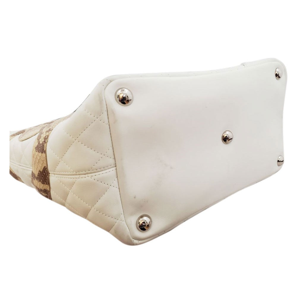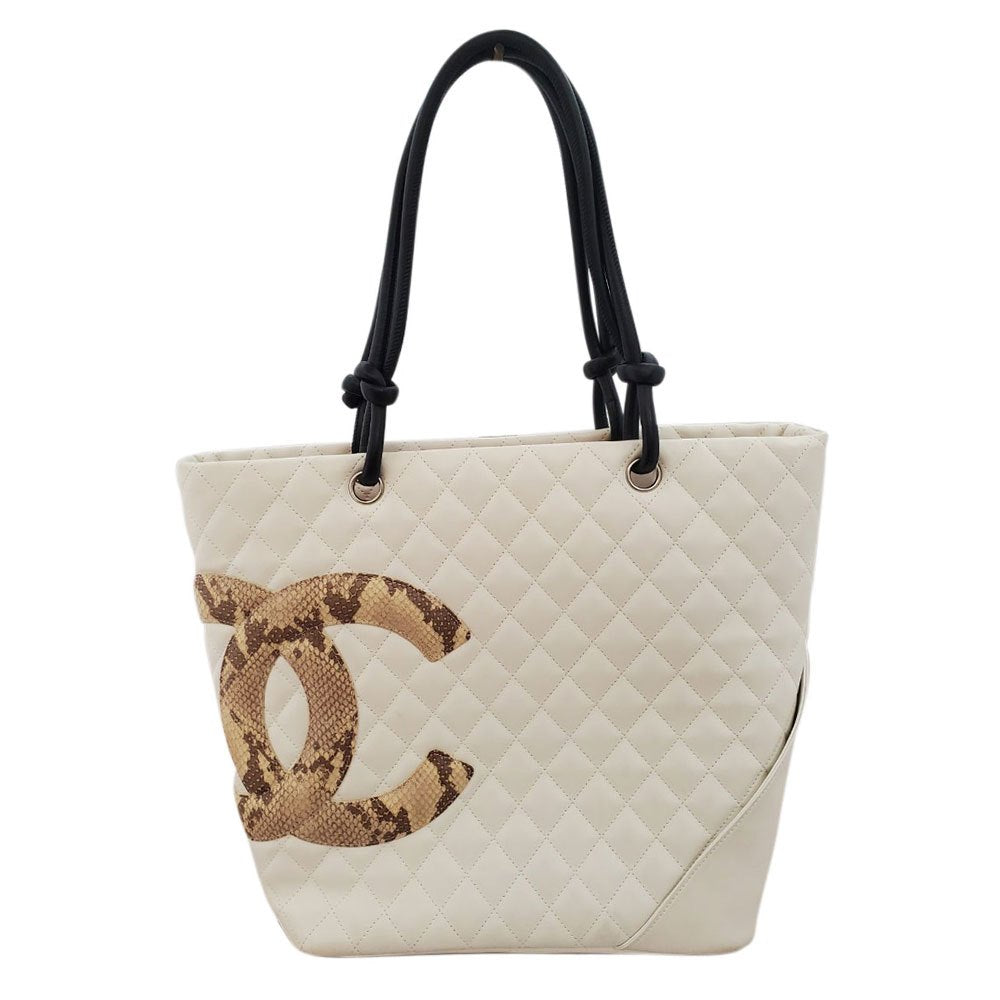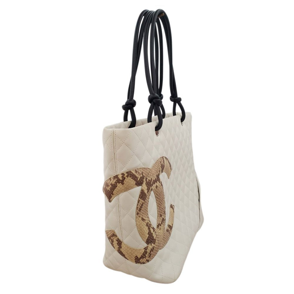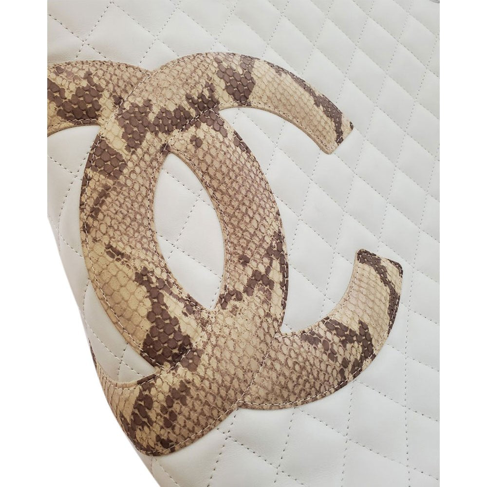 CHANEL Lambskin/Python Cambon Line Large Tote Bag A25167 White/Black