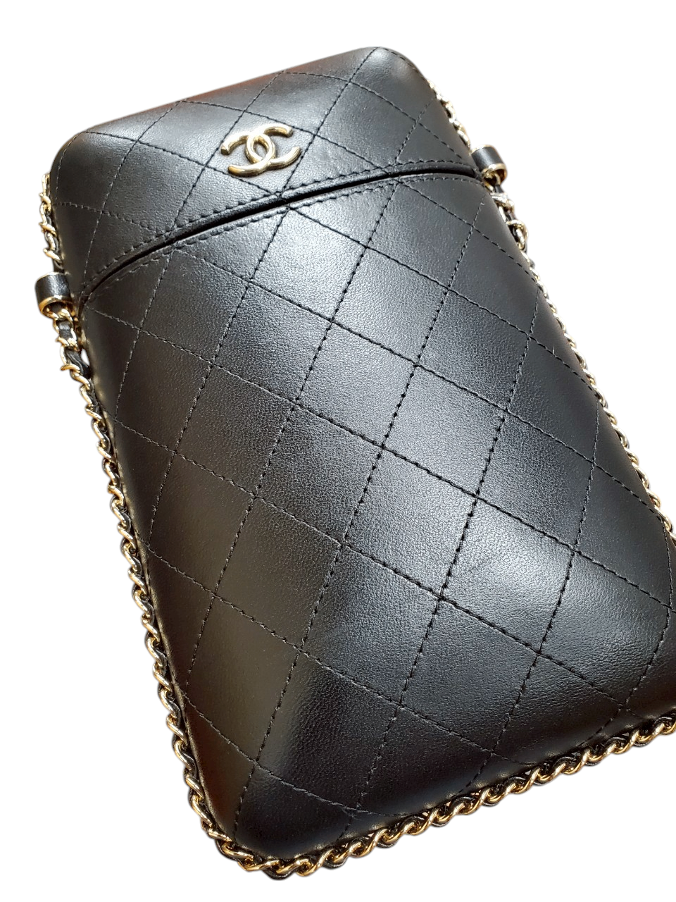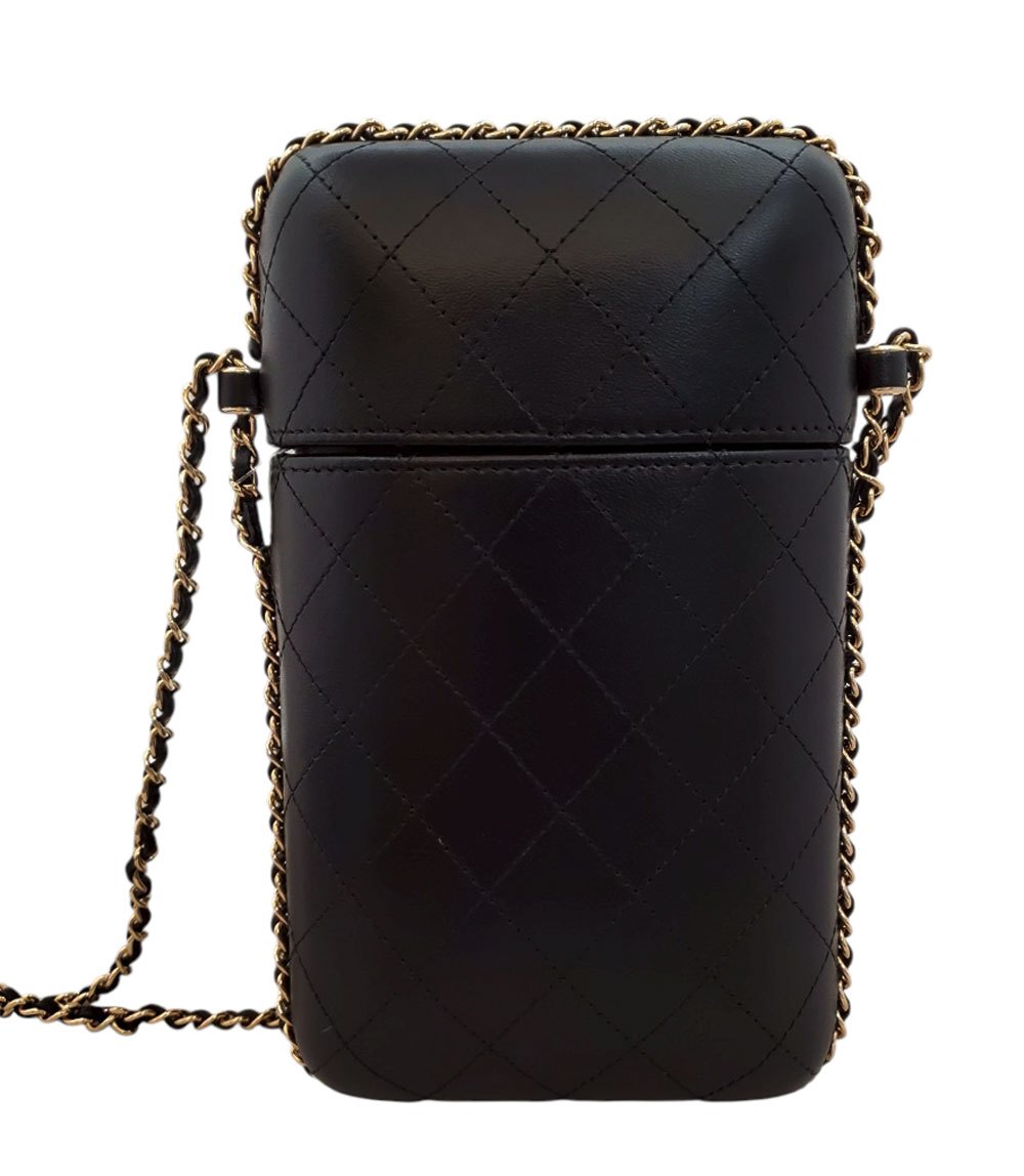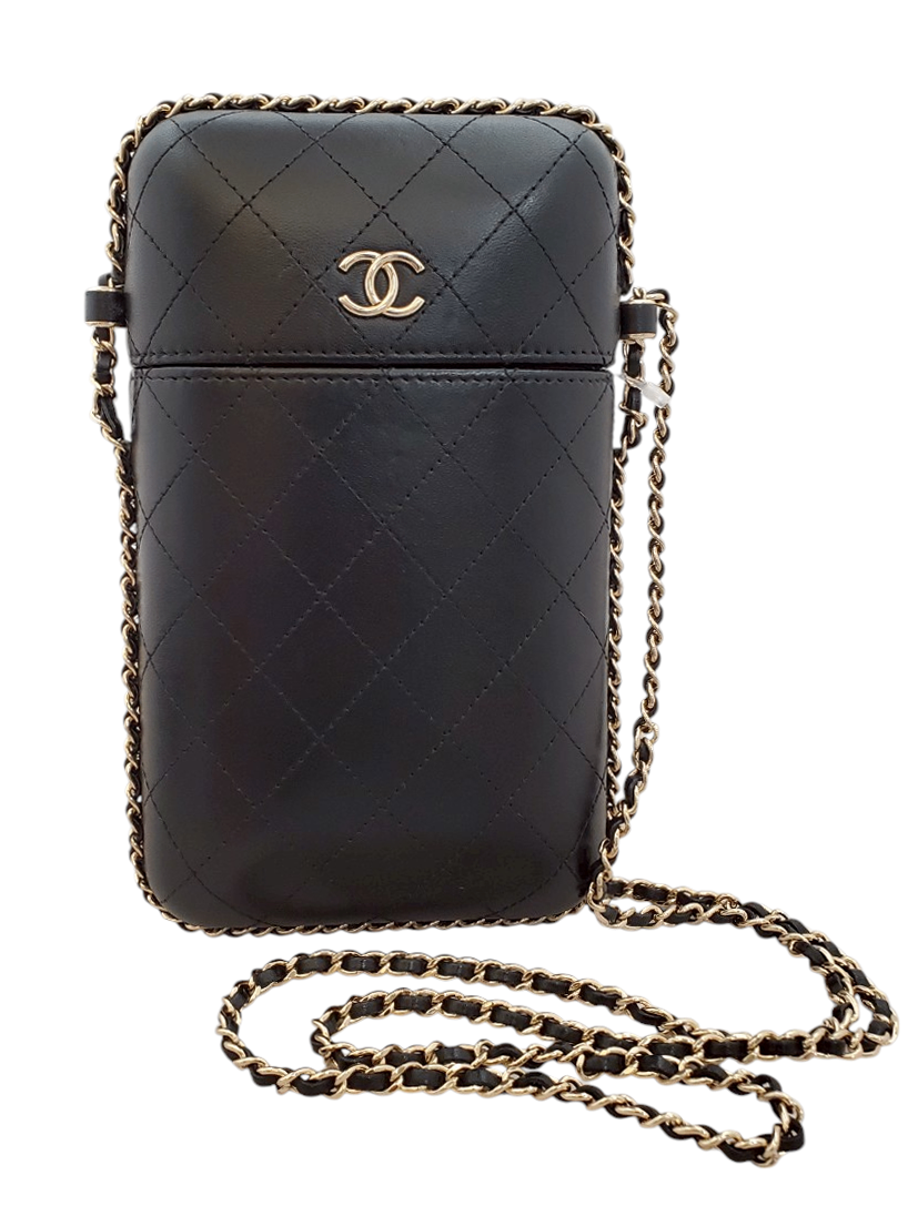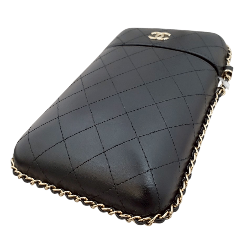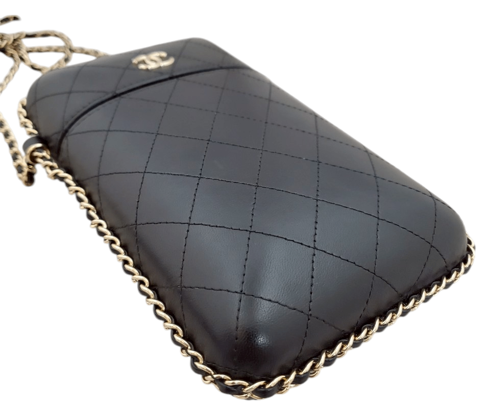 CHANEL Lambskin Phone Case Chain Shoulder Bag Black