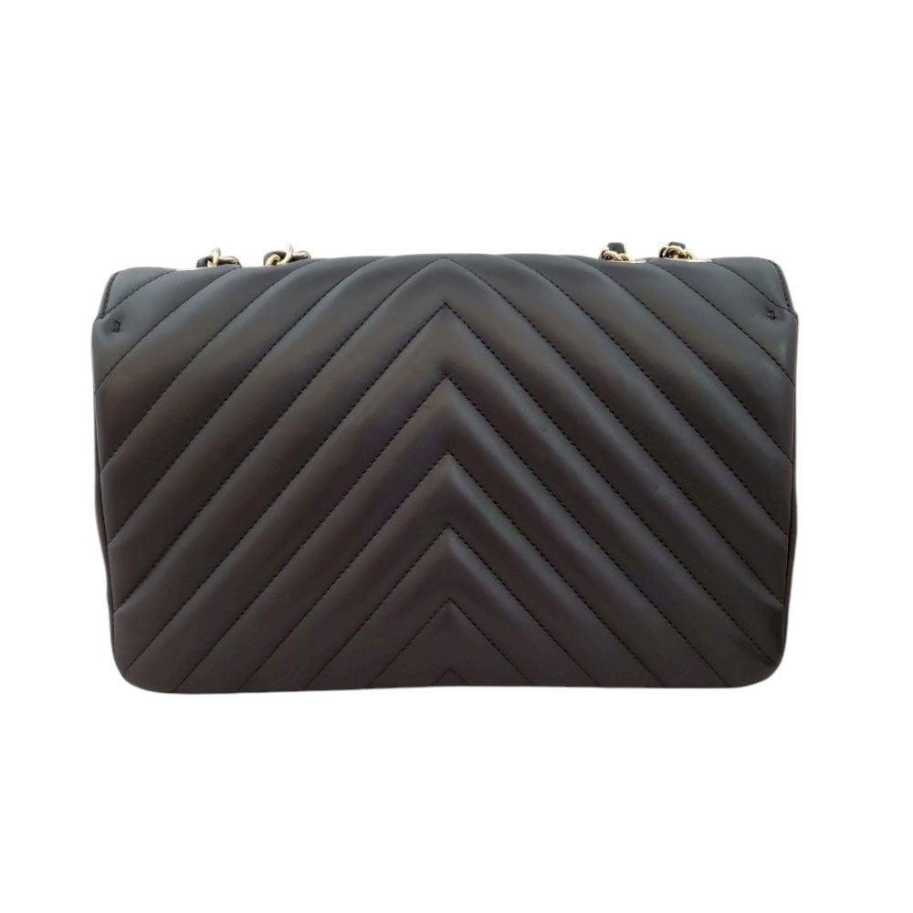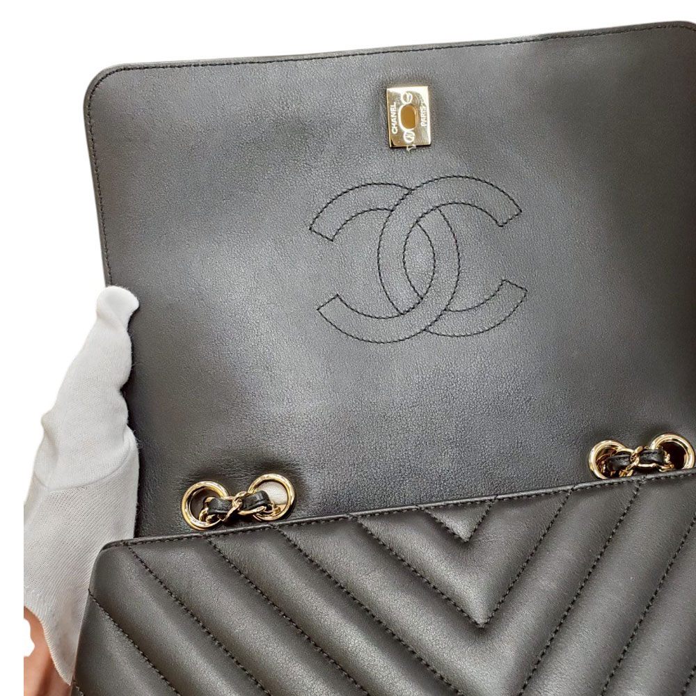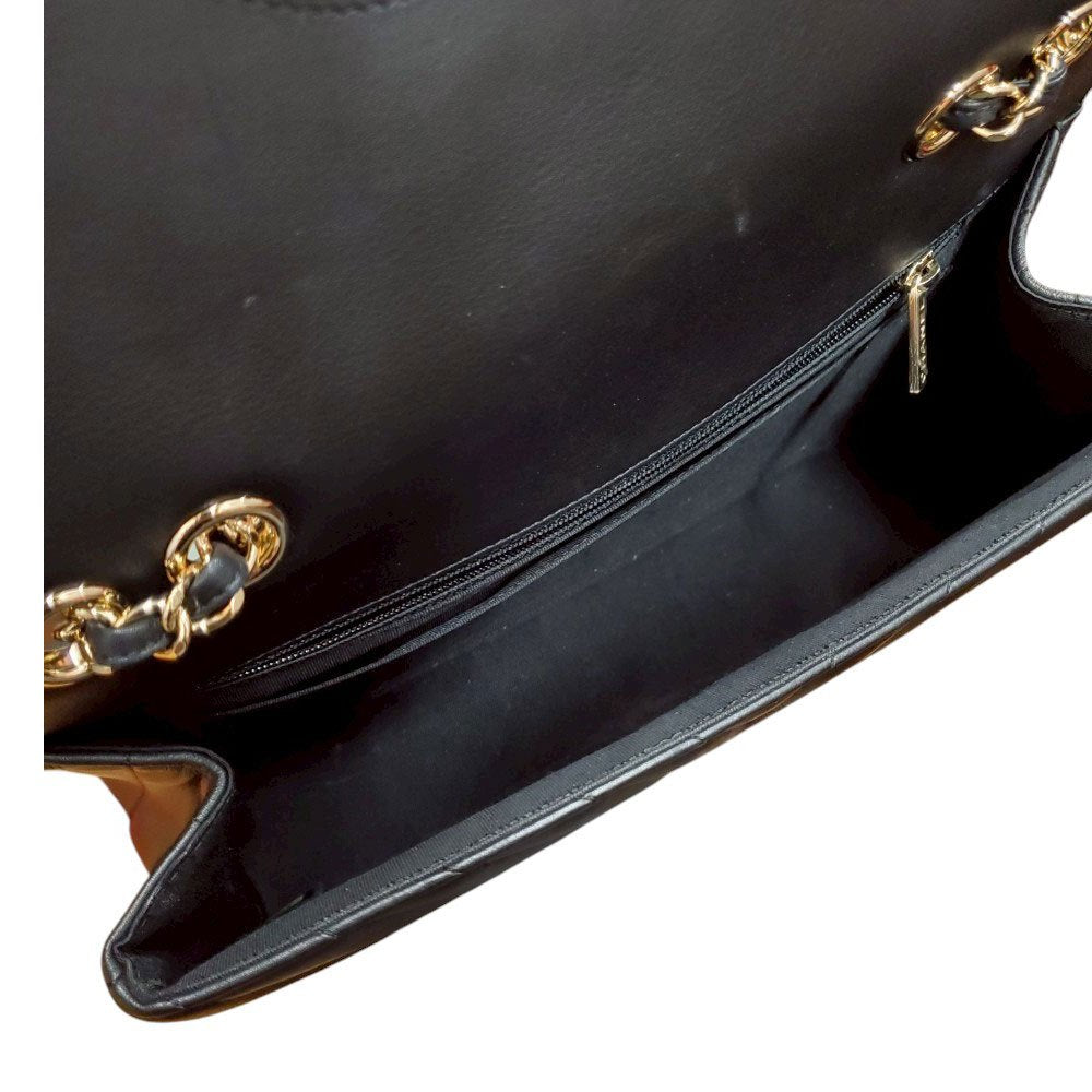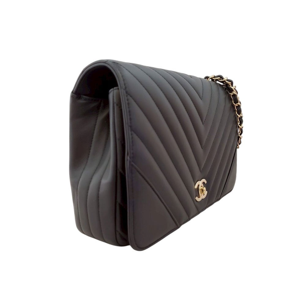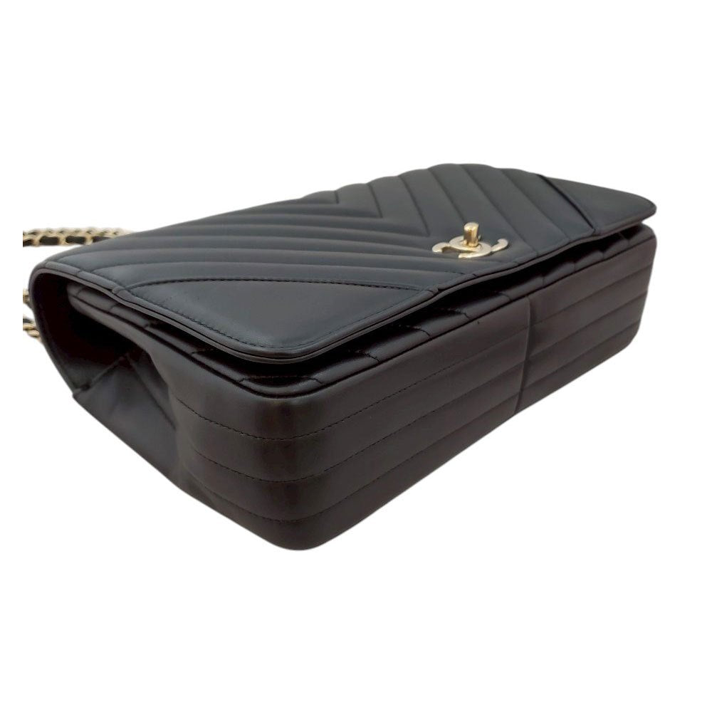 シャネル CHANEL ブラック ラムスキン VステッチWチェーン ショルダーバッグ