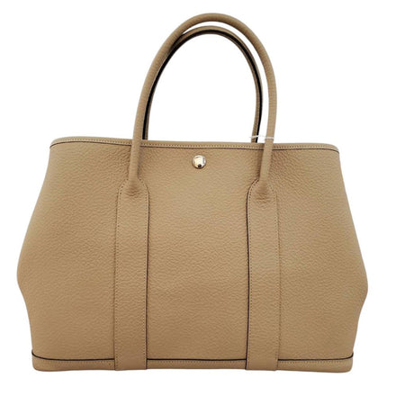 ガーデンパーティーは、カジュアルからビジネス、旅行まで幅広いシーンで活躍する汎用性の高いバッグです。特にPMサイズは、普段使いに最適なサイズ感で、A4書類も収納できるため、通勤バッグとしても人気。また、GMサイズは週末の旅行や荷物の多い日にも活躍します。定番カラーの「エトゥープ」「ブラック」「ゴールド」に加え、明るい「ブルー」や「ルージュ」などのカラー展開も豊富。シンプルながらもエルメスの品格を感じさせるデザインで、どんなスタイルにも洗練されたアクセントを加えます。