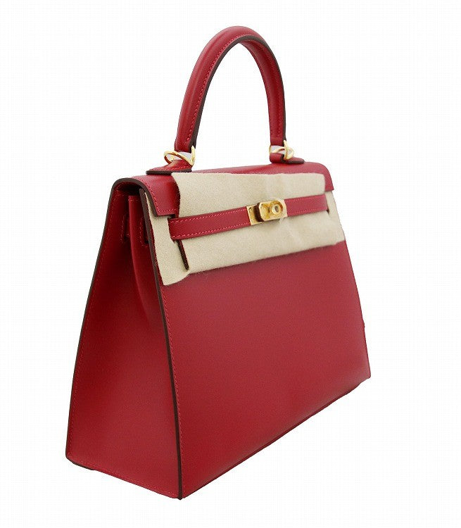Hermes Kelly 25 Rouge vif Tadelakt G hardware Y stamp