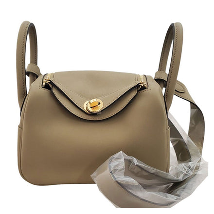 リンディは、カジュアルなスタイルからフォーマルな場面まで幅広く使える汎用性の高さが魅力。短めのハンドルで手持ちにすればエレガントな印象に、ロングストラップで肩掛けすればリラックス感のあるスタイルに変化します。素材にはエルメスの高級レザーが使用され、特に柔らかいクレマンスレザーは使うほどに味わいが増し、手に馴染むのが特徴。カラーバリエーションも豊富で、「エトゥープ」「ゴールド」「ブラック」などの定番カラーから、鮮やかな「ブルー」「ルージュ」など、好みに合わせて選べます。