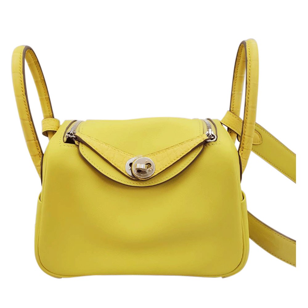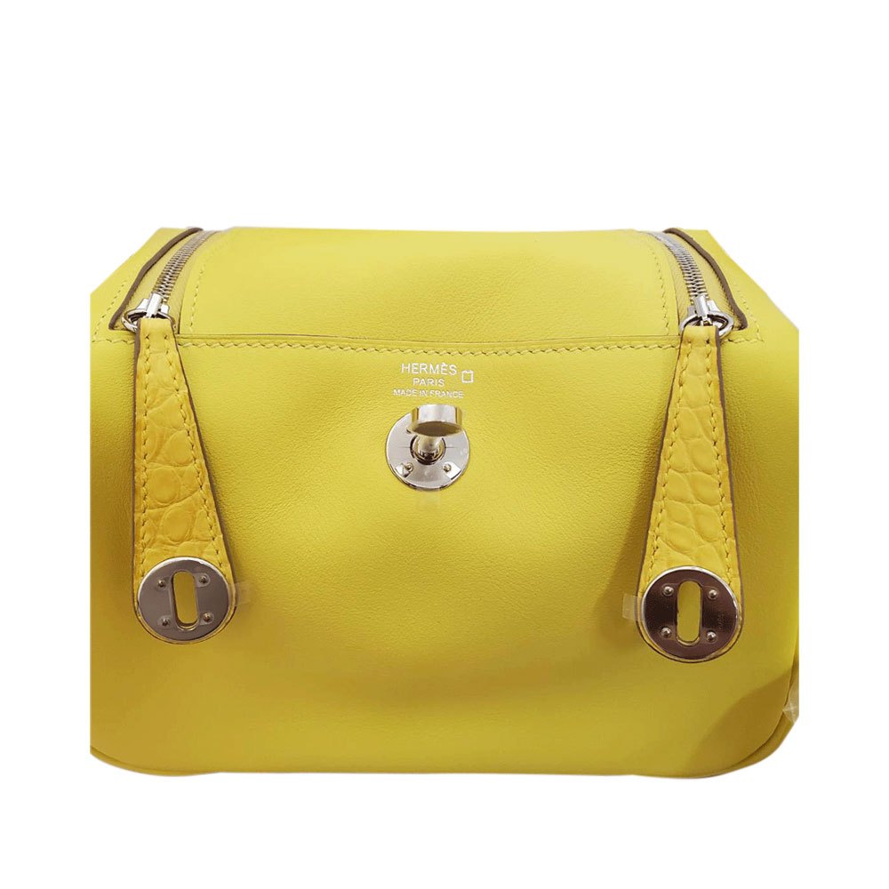 Hermes Lindy Mini Touch Swift/Alligator Lime B Stamp Silver Hardware