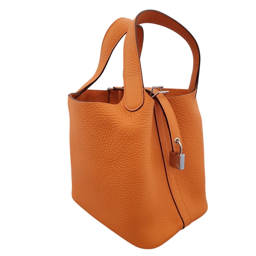 Hermes Picotin Lock PM, Taurillon, Orange, Silver hardware, W stamp