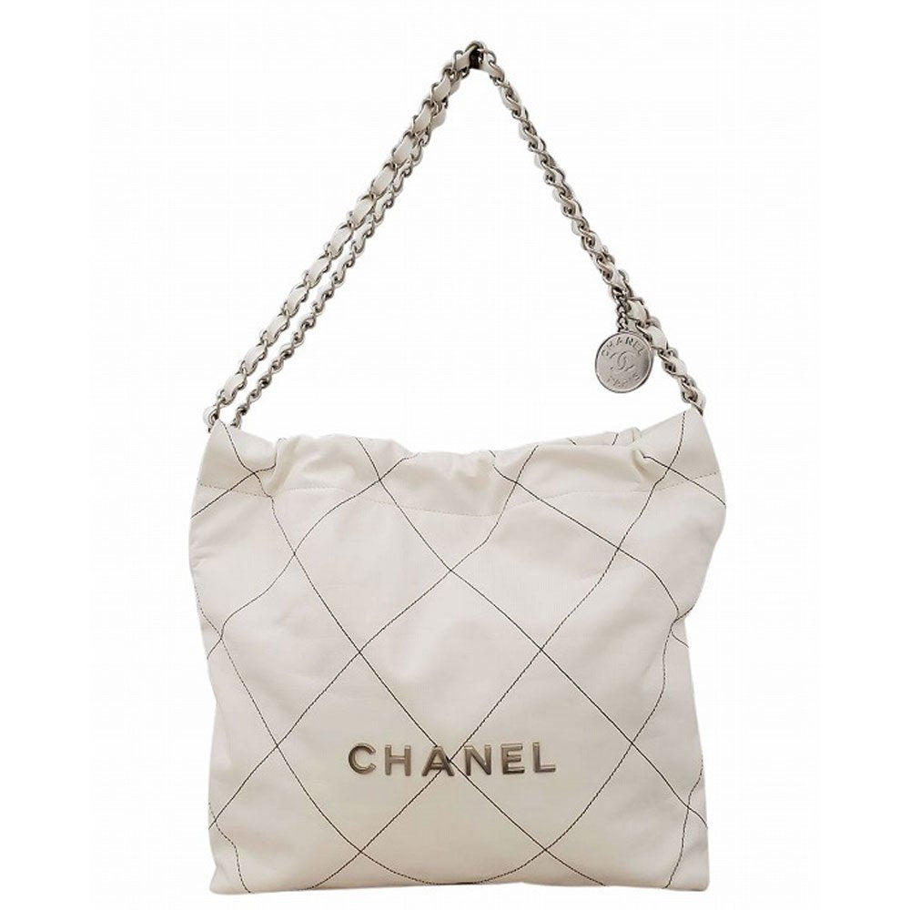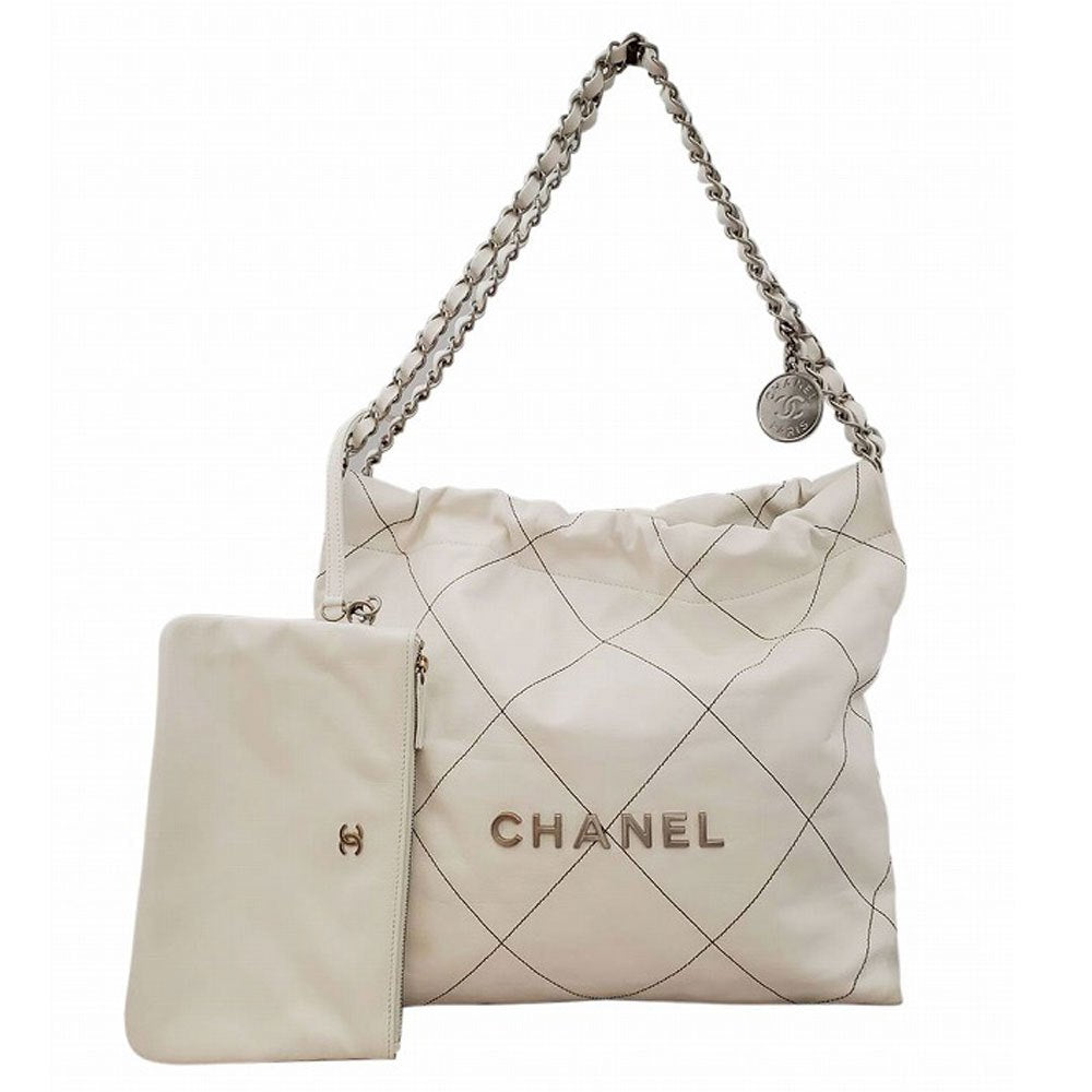CHANEL Shiny Calfskin CHANEL22 Handbag White/Silver