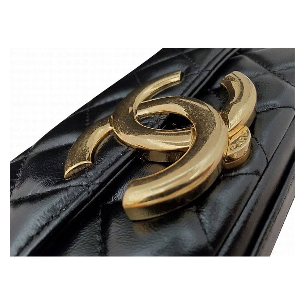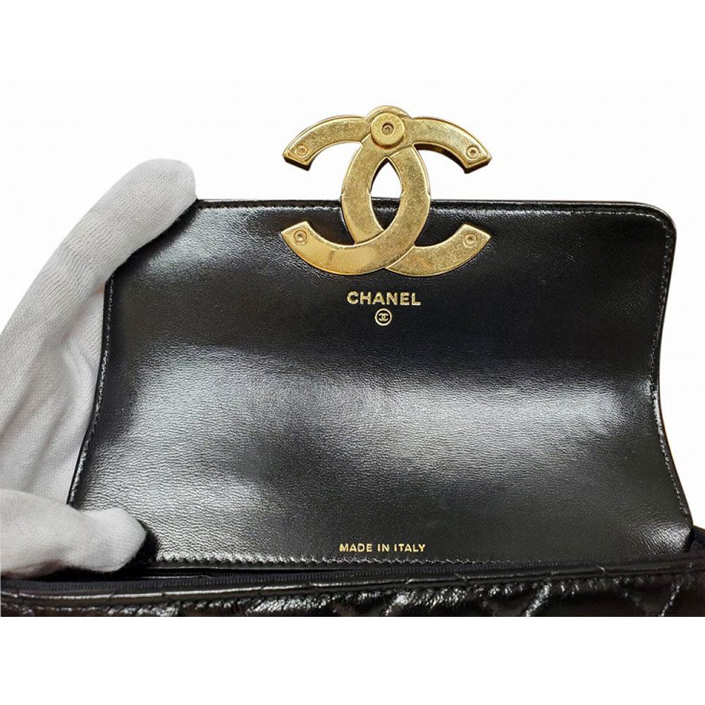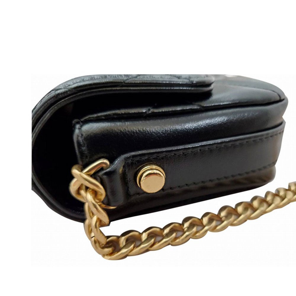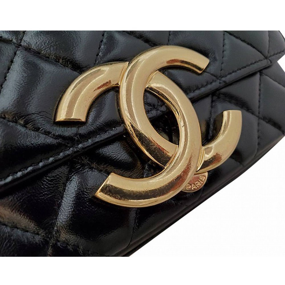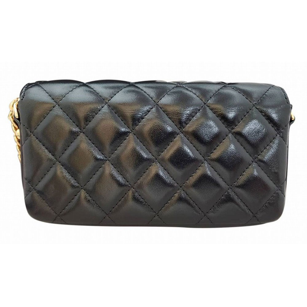シャネル CHANEL シャイニーラムスキン マトラッセ チェーンショルダー フォンケース ブラック